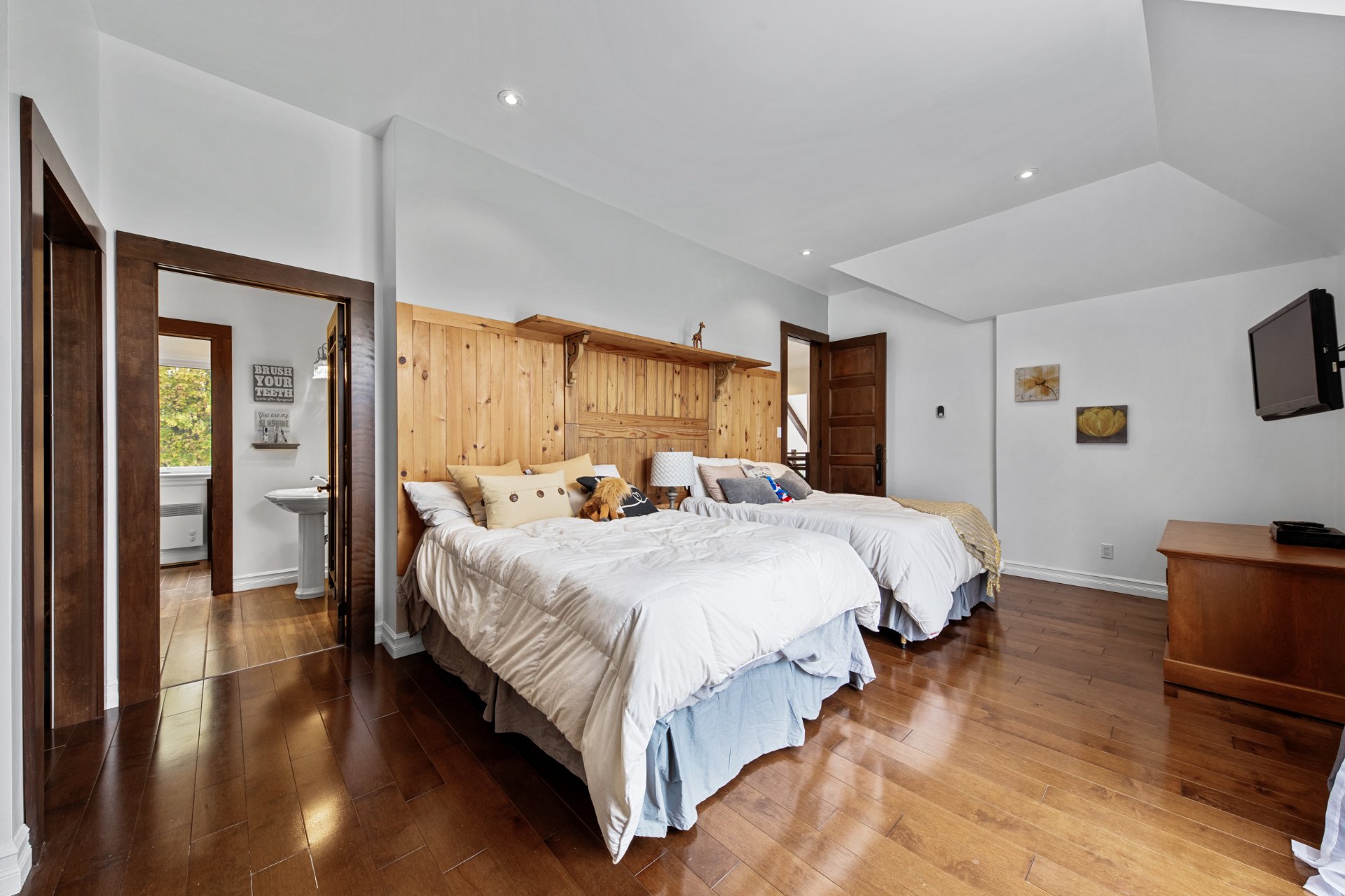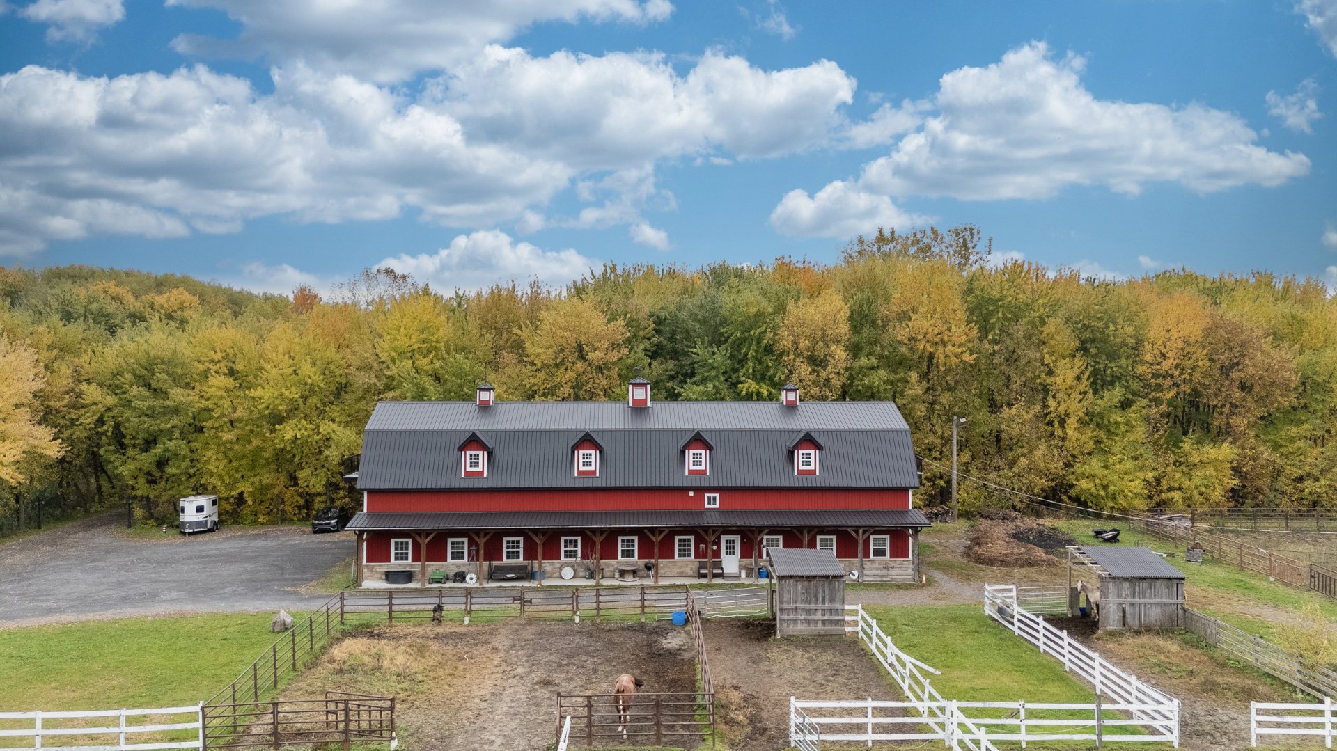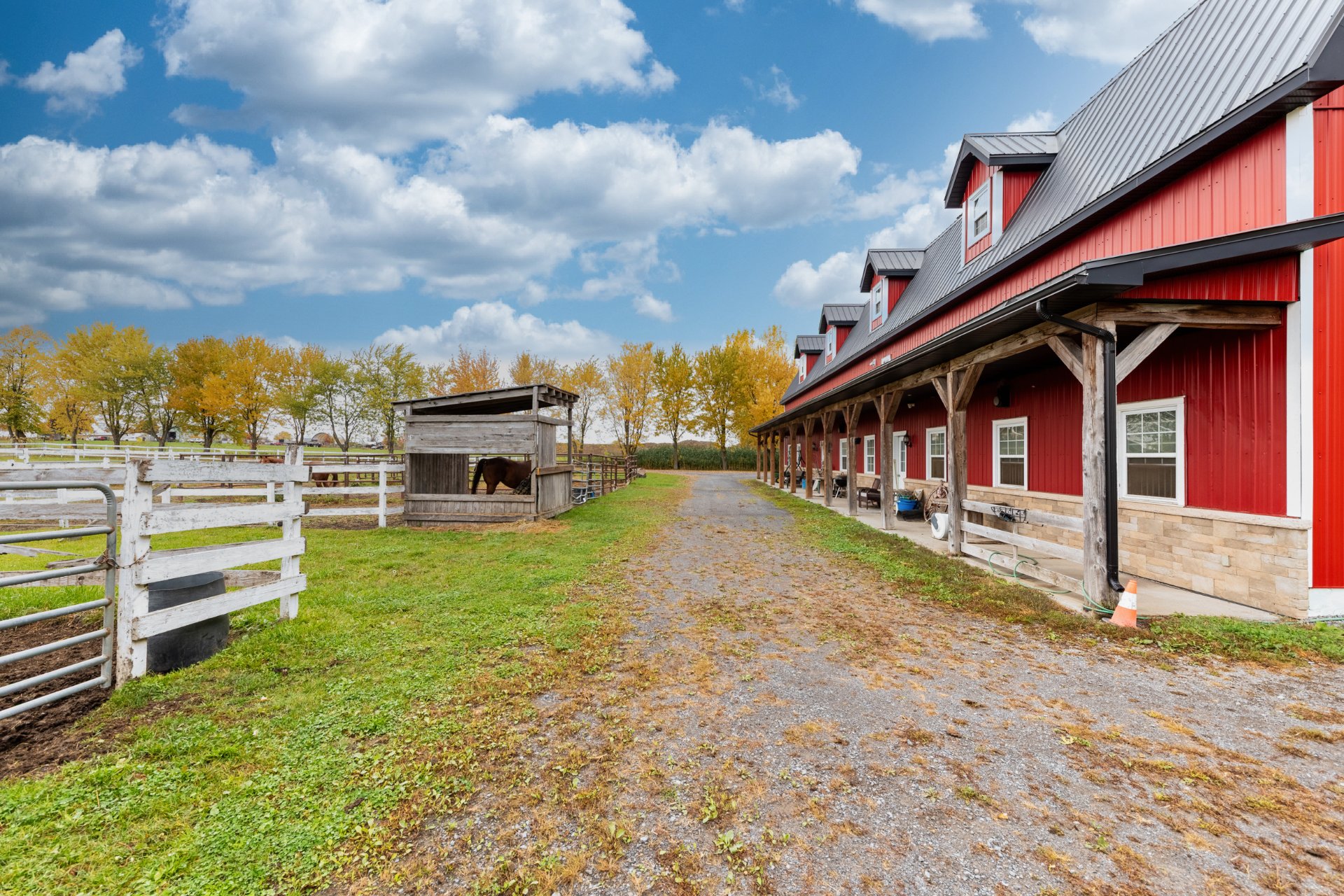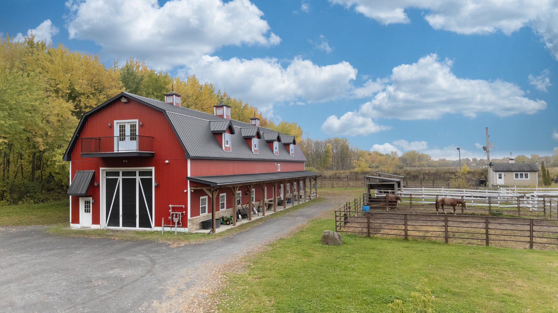 UNIQUE DOMAINE PRIVÉ AU QUÉBEC (près de 30 acres) EN BORD DE L'EAU ! Cette résidence de luxe construite en 2016 propose 4 chambres, incluant une suite principale avec walk-in, balcon privé et salle de bain attenante. À l'intérieur : plafonds cathédrale, cinéma maison, gym, sauna, cellier, foyers, planchers chauffants, ascenseur, garage double. Sur le terrain : écurie haut de gamme construite en 2013 avec 6 boxes. Double accès : rue Garand avec portail et par un chemin privé. Située à seulement 30 minutes du centre-ville de Montréal. Un bien rare, idéal pour résidence principale, secondaire ou investissement de prestige.
