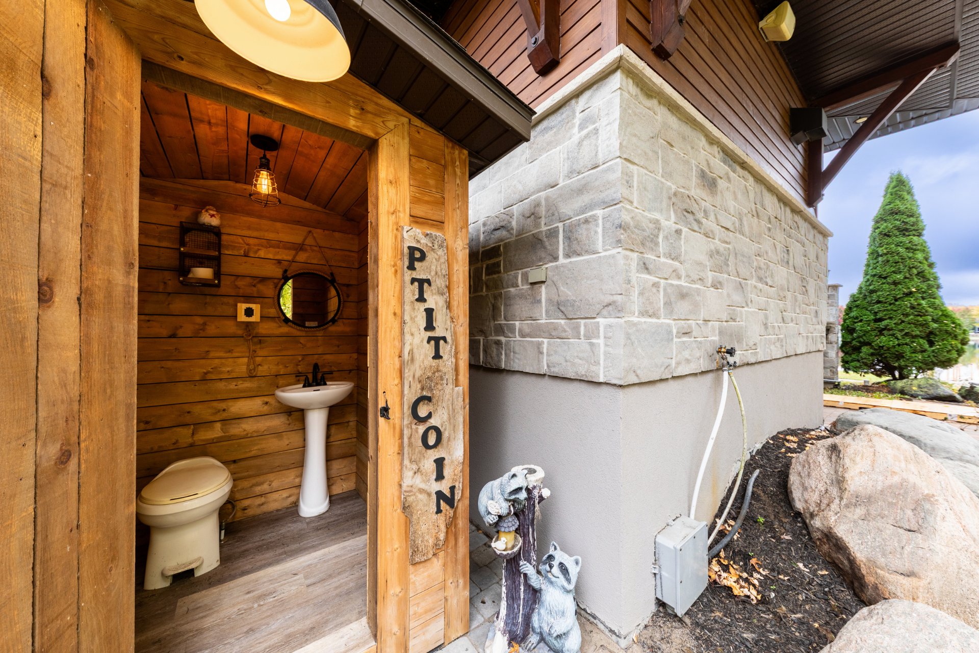 Coin lavabo, Coiffure tous les meubles et décos, Fixture de la chambre d'invité style western, Le poulailler, Cabanon brun, Meuble BBQ, Roche décorative extérieur, Rideau de chambre, Borne de recharge électrique.