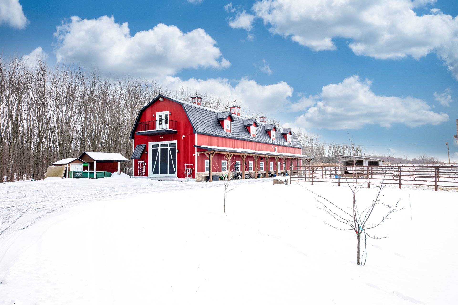 UNIQUE DOMAINE PRIVÉ AU QUÉBEC (près de 30 acres) EN BORD DE L'EAU ! Cette résidence de luxe construite en 2016 propose 4 chambres, incluant une suite principale avec walk-in, balcon privé et salle de bain attenante. À l'intérieur : plafonds cathédrale, cinéma maison, gym, sauna, cellier, foyers, planchers chauffants, ascenseur, garage double. Sur le terrain : écurie haut de gamme construite en 2013 avec 6 boxes. Double accès : rue Garand avec portail et par un chemin privé. Située à seulement 30 minutes du centre-ville de Montréal. Un bien rare, idéal pour résidence principale, secondaire ou investissement de prestige.